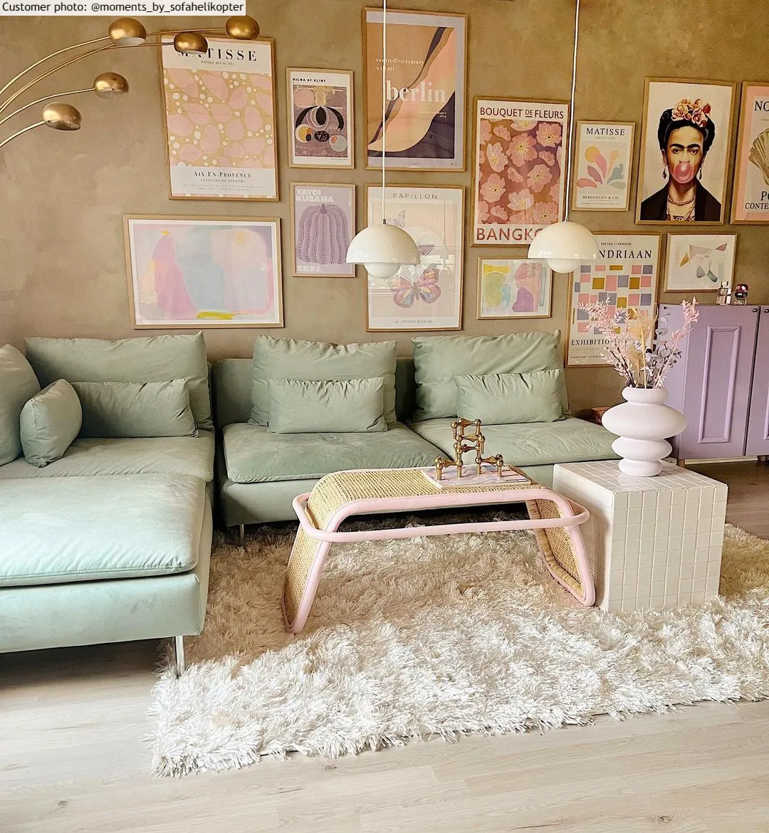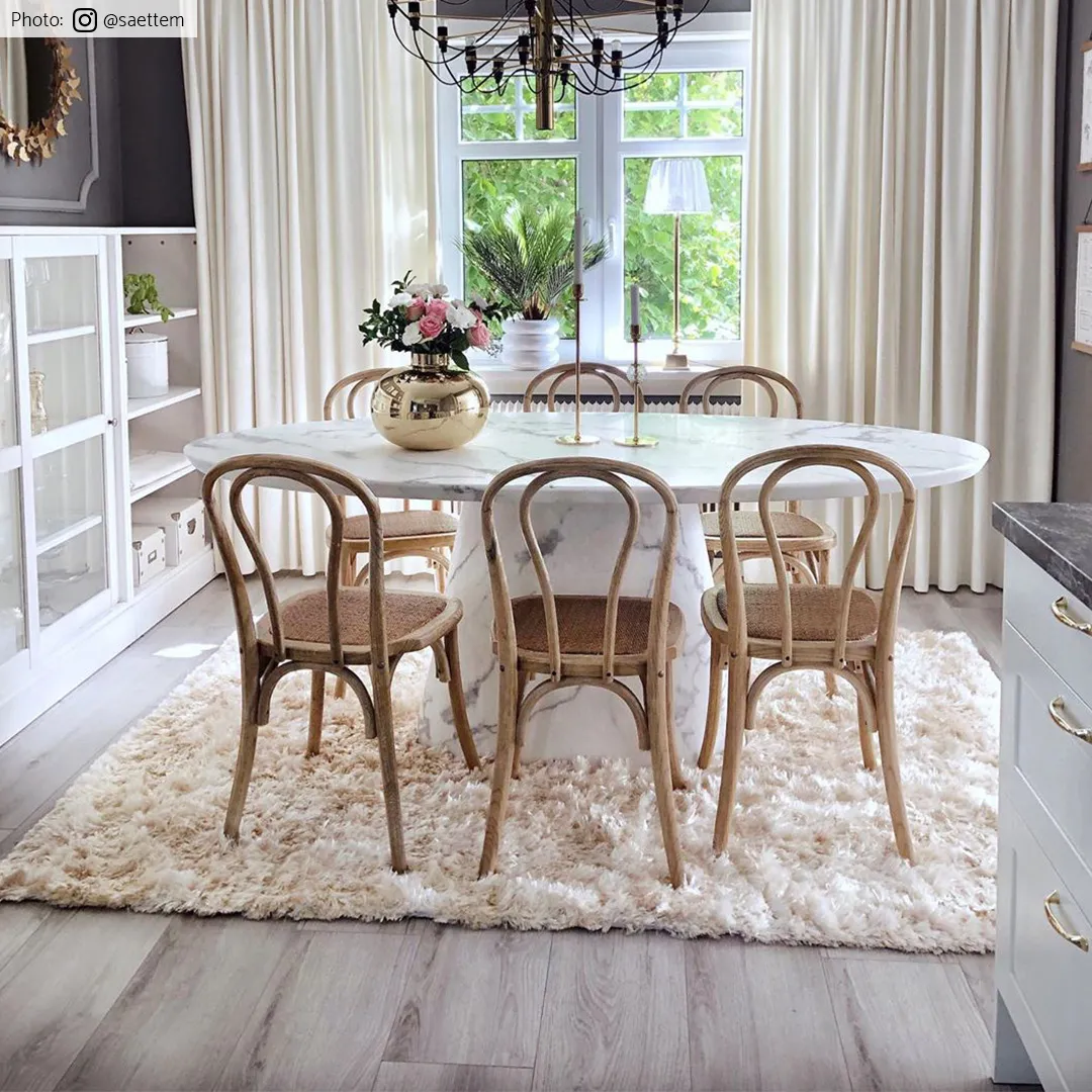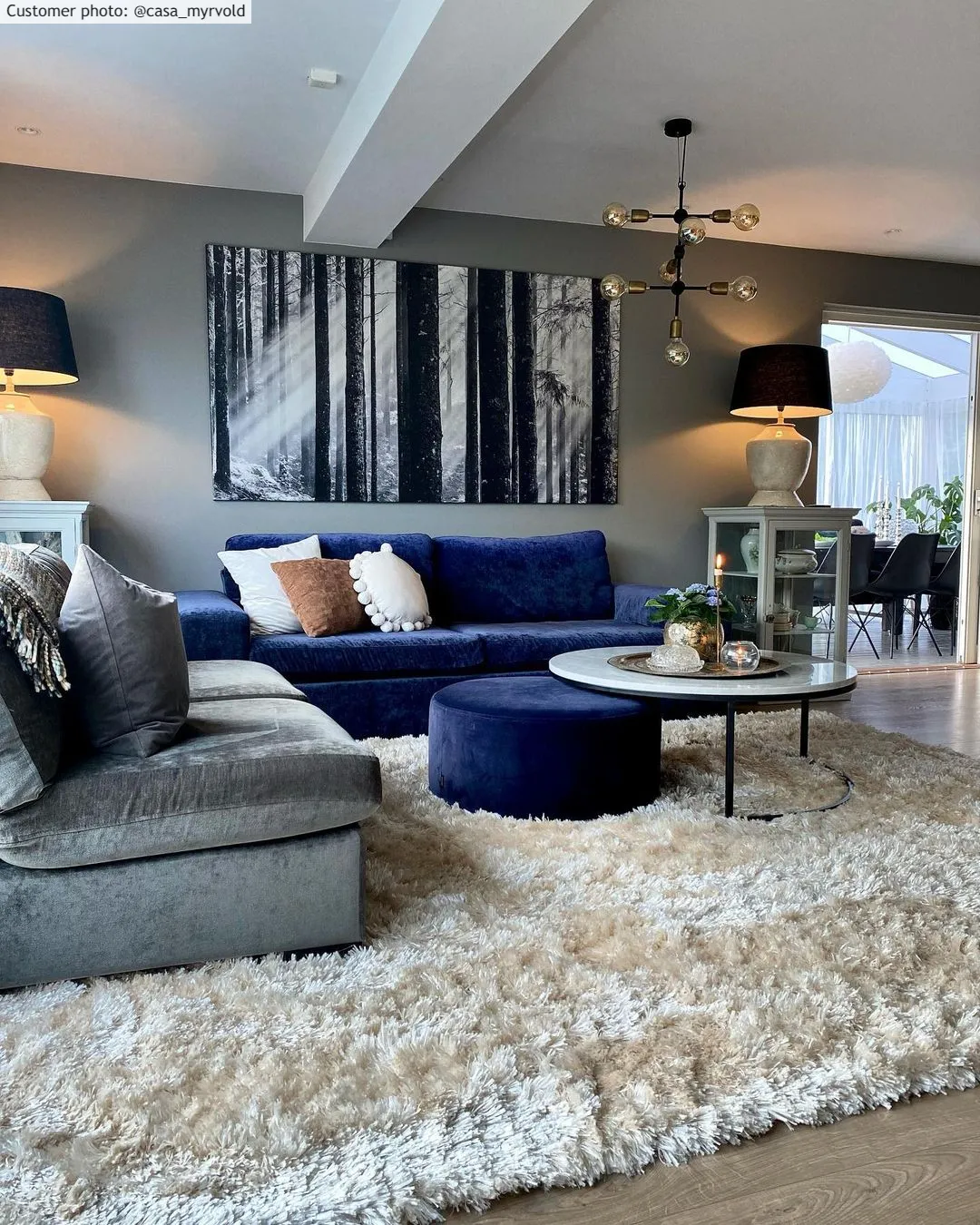Tapijt van Rya. Zacht, dicht, indrukwekkende pool. Glanzende draden worden afgewisseld met matte en geven een levendig, golvend Rya tapijt.