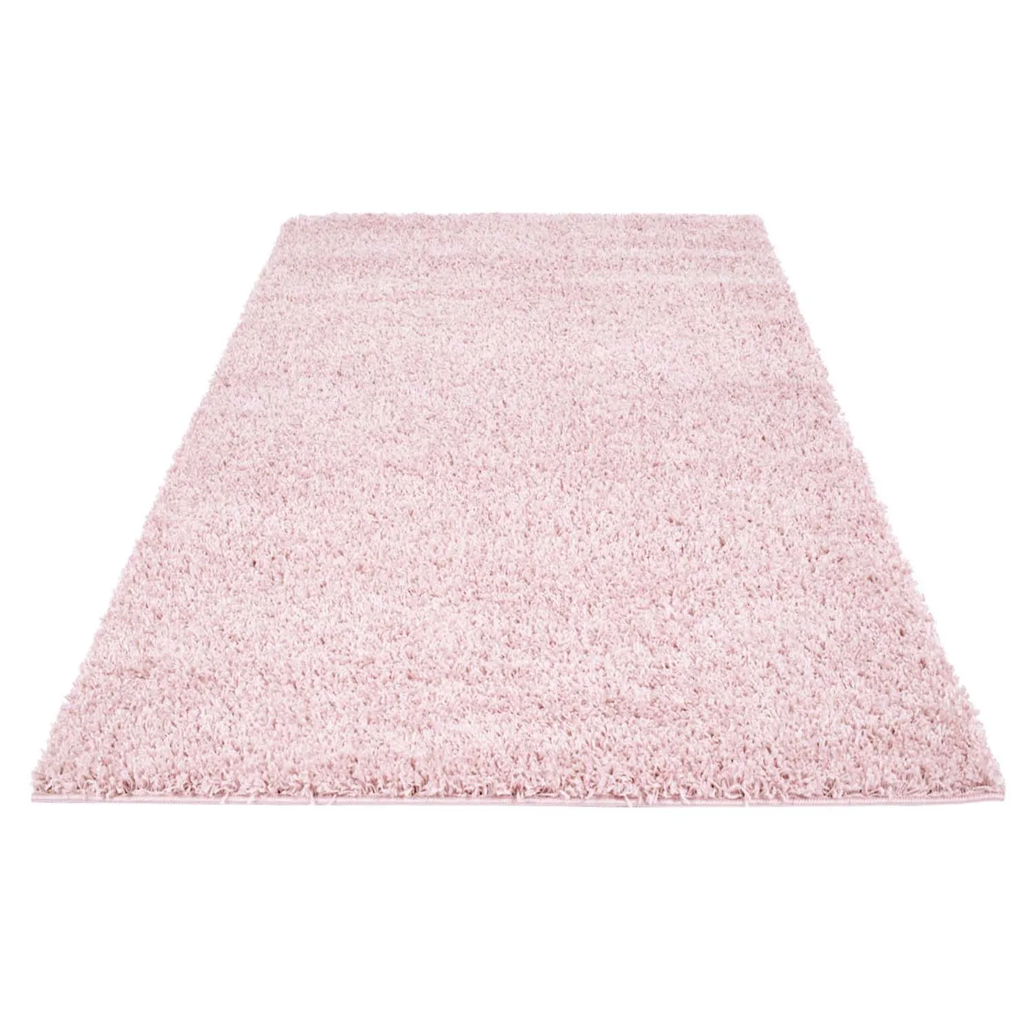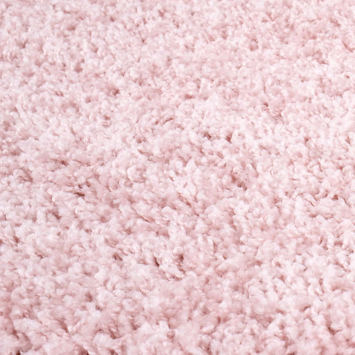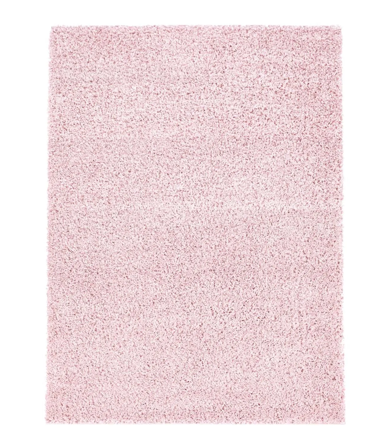 Het hoogpolig vloerkleed Trim heeft een korte en dichte pool. Glanzende draden zijn verweven met zwart-wit, waardoor een levendig en vloeiend ruig tapijt ontstaat. Laat je voeten zacht en comfortabel landen terwijl je rondloopt op dit huiselijk, hoogpolig vloerkleed. Het vloerkleed past net zo goed onder de keukentafel als in de woonkamer of als kindertapijt. Hier zie je het vloerkleed in de kleur roze.