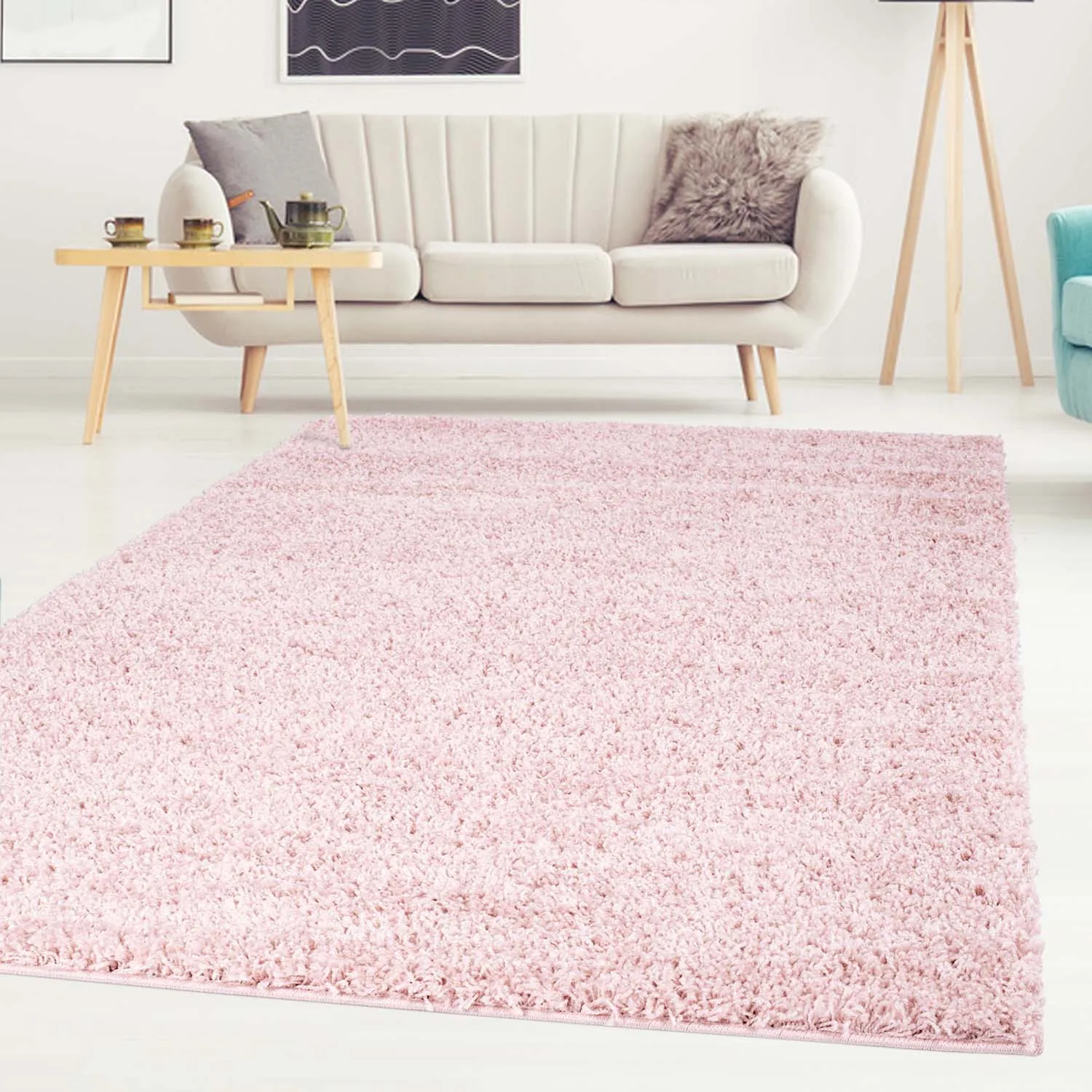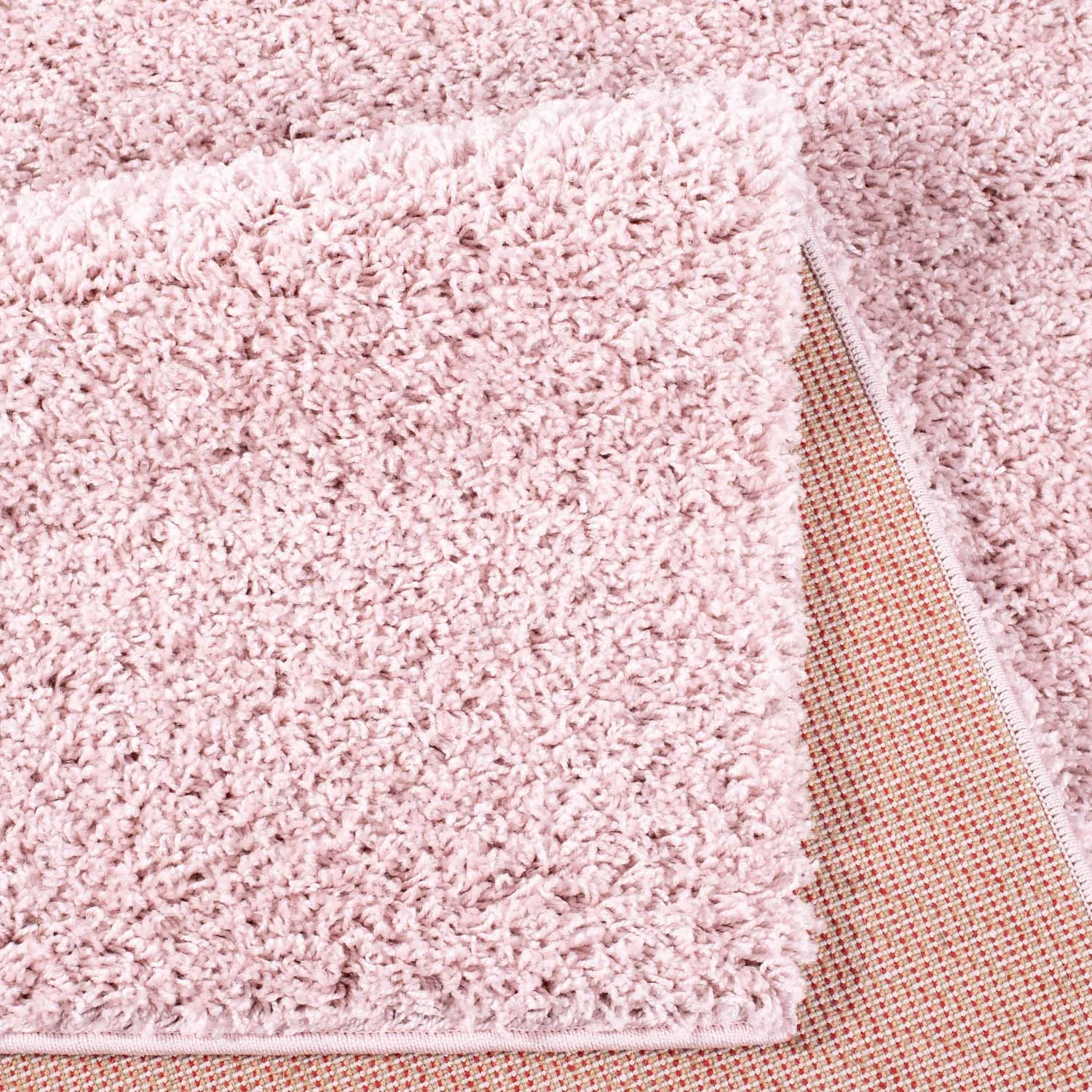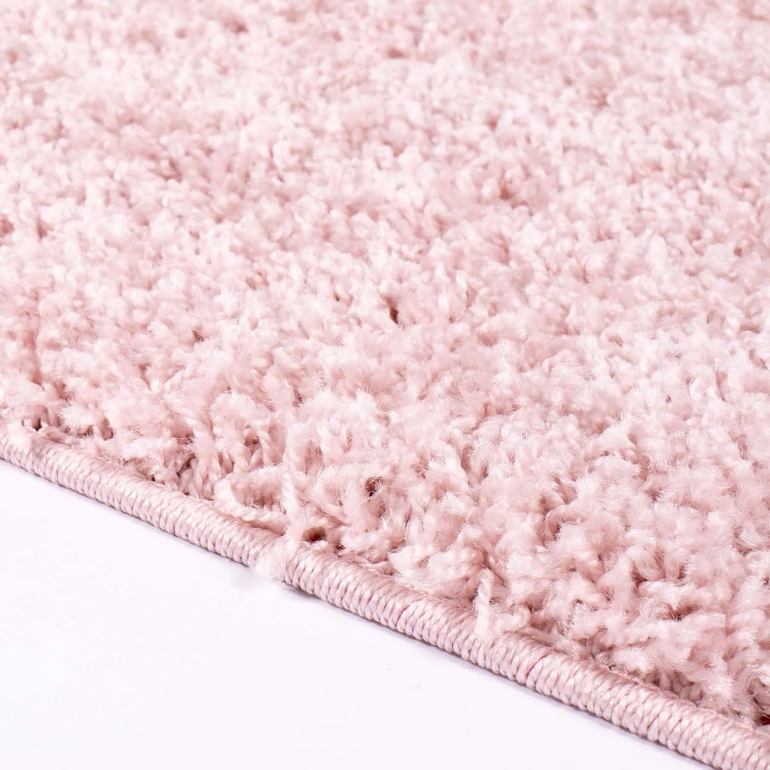 Het hoogpolig vloerkleed Trim heeft een korte en dichte pool. Glanzende draden zijn verweven met zwart-wit, waardoor een levendig en vloeiend ruig tapijt ontstaat. Laat je voeten zacht en comfortabel landen terwijl je rondloopt op dit huiselijk, hoogpolig vloerkleed. Het vloerkleed past net zo goed onder de keukentafel als in de woonkamer of als kindertapijt. Hier zie je het vloerkleed in de kleur roze.