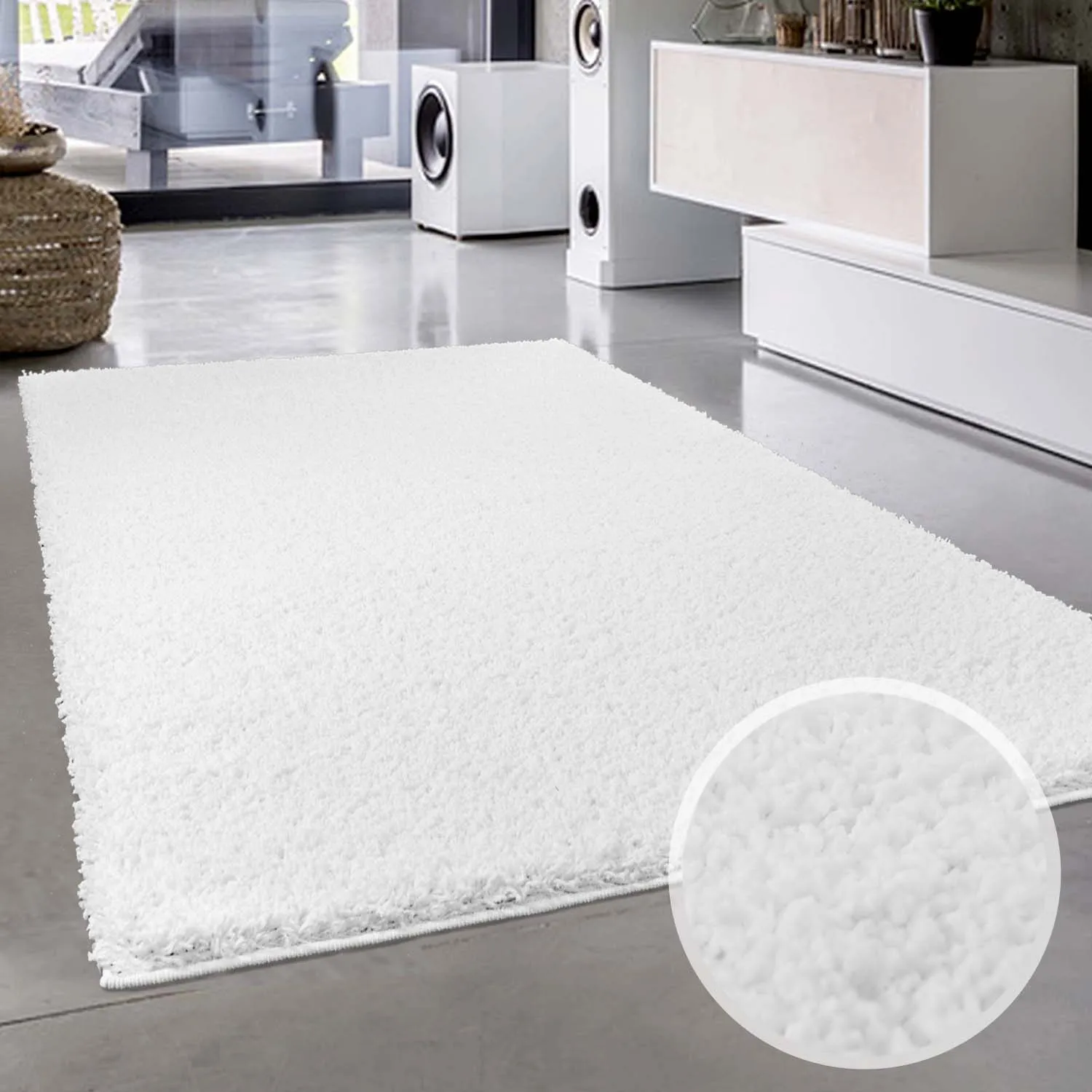 Het hoogpolig vloerkleed Trim heeft een korte en dichte pool. Glanzende draden zijn verweven met zwart-wit, waardoor een levendig en vloeiend ruig tapijt ontstaat. Laat je voeten zacht en comfortabel landen terwijl je rondloopt op dit huiselijk, hoogpolig vloerkleed. Het vloerkleed past net zo goed onder de keukentafel als in de woonkamer of als kindertapijt. Hier zie je het vloerkleed in de kleur wit.
