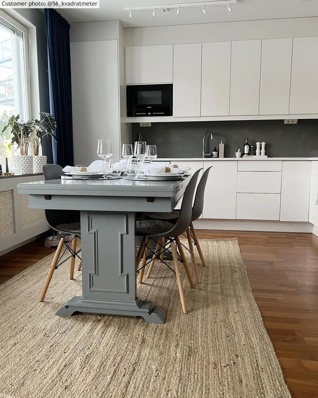 Vloerkleed van jute. Een stukje natuur in huis. Karakteristiek grof, stevig, net zoals een echt jute vloerkleed moet zijn.