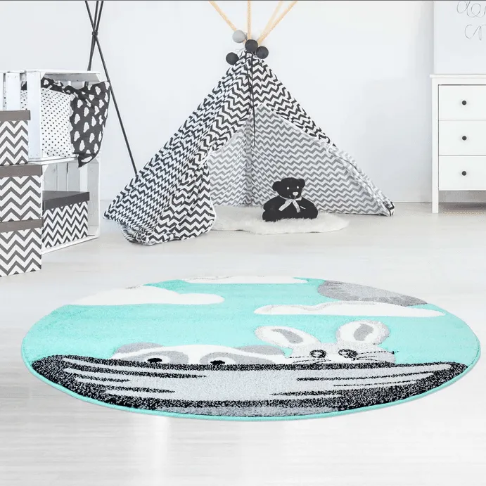Kindervloerkleed – Bueno Bunny Rond (turkoois)