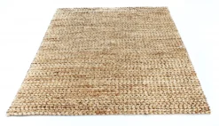 Vloerkleed van jute. Een stukje natuur in huis. Karakteristiek grof, stevig, net zoals een echt jute vloerkleed moet zijn.