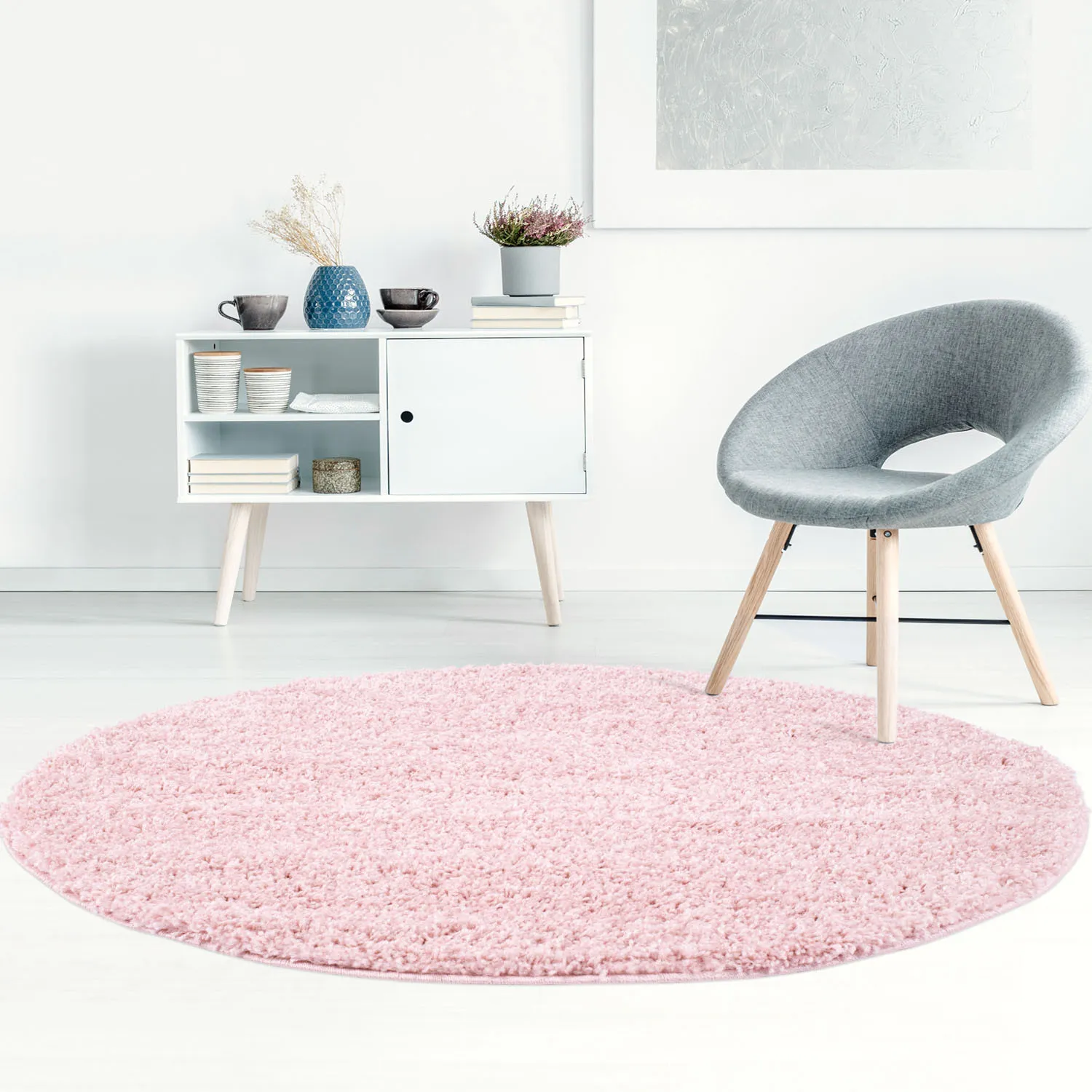 Het hoogpolig vloerkleed Trim met korte en dichte pool, hier in ronde vorm. Glanzende draden zijn verweven met zwart-wit, waardoor een levendig en vloeiend hoogpolig vloerkleed ontstaat. Laat je voeten zacht en comfortabel landen terwijl je rondloopt op dit huiselijk, hoogpolig vloerkleed. Het vloerkleed past net zo goed onder de keukentafel als in de woonkamer of als kindertapijt. Hier zie je het vloerkleed in de kleur roze.