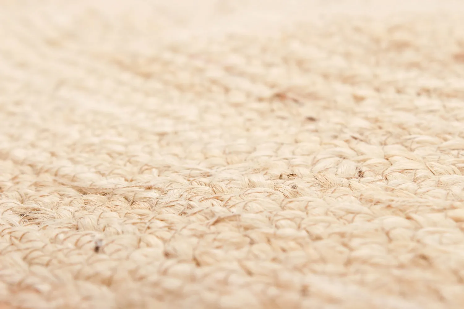 Vloerkleed van jute. Een stukje natuur in huis. Karakteristiek grof, stevig, net zoals een echt jute vloerkleed moet zijn.