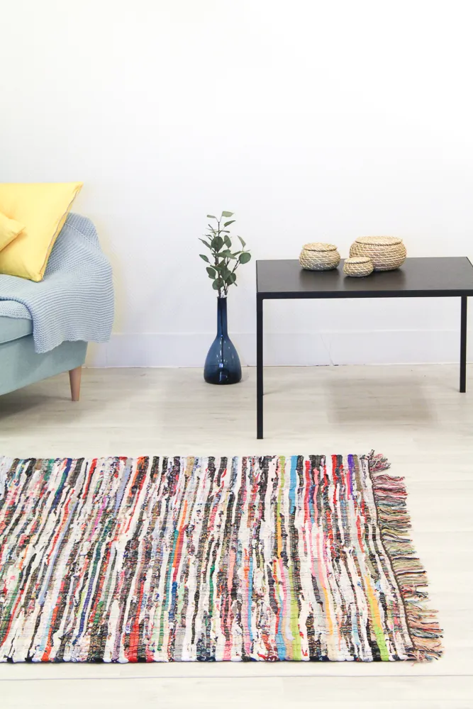 De Jolly rag-rug is een echt kunstwerk en geeft uw interieur een uniek karakter. De prachtige kleurencombinaties van het vloerkleed geven direct een positief gevoel.