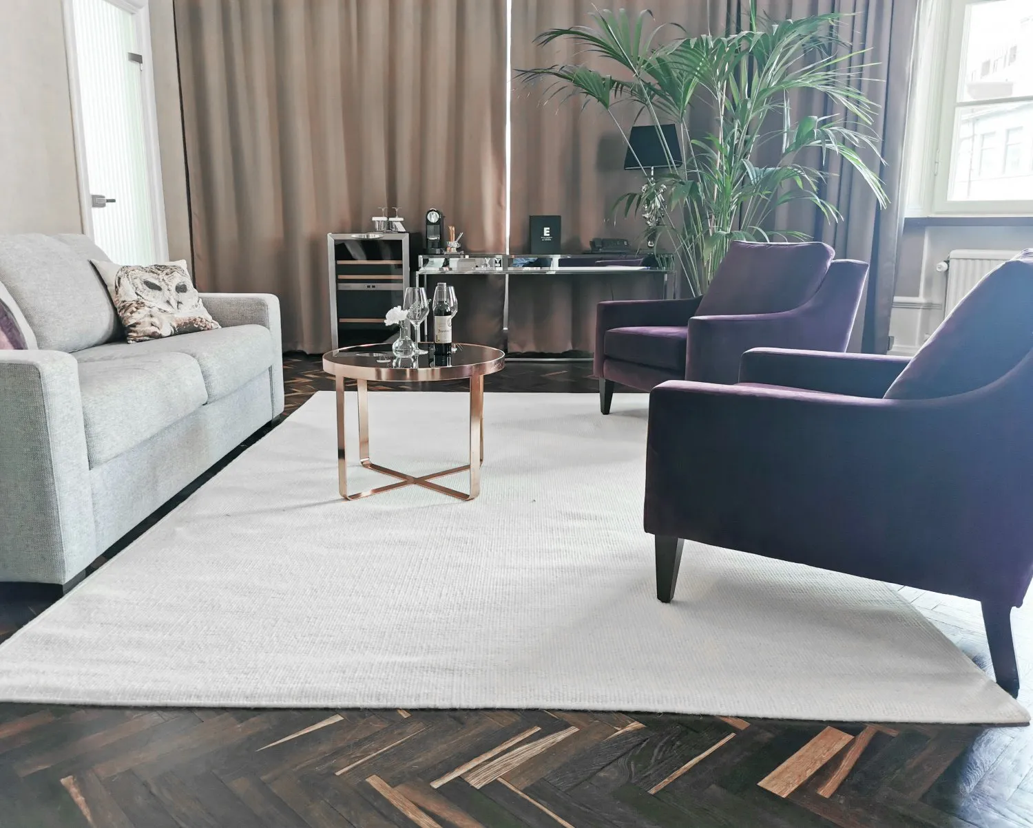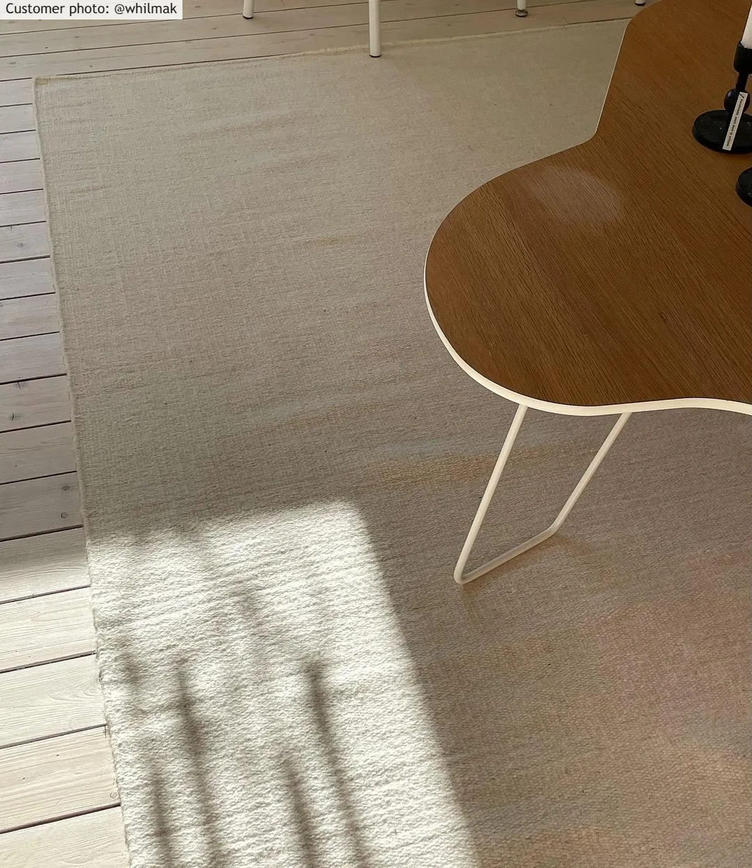 Plat geweven vloerkleed van wol. Wollen vloerkleed met dunne, mooie snit. Geweldige kwaliteit. Makkelijk te verplaatsen. Ligt stevig en plat op de vloer. Geeft een gevoel van originaliteit.